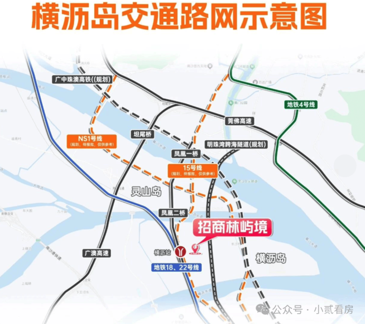南沙招商屿境位于广州市南沙区横沥岛,由知名房企招商蛇口倾力打造。项目占地约 3.1 万平方米,总建筑面积约 12.36 万平方米,容积率 2.5,绿化率 30.41%,共规划有 7 栋楼,提供 806 户高品质住宅。其地理位置优越,交通十分便利,距离地铁 18 号线横沥站仅约 400 米,可快速通达珠江新城、琶洲、万博等重要商务区,横沥岛未来还将有多条轨道交通线路经过,包括 15 号线、NS2 线等,进一步提升交通便利性。同时,周边也有多个城市主干道,自驾出行同样便捷。