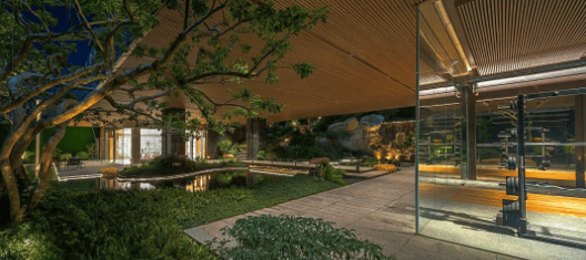 越秀天河和樾府在社区规划与配套打造上尽显高端品质,致力于为业主提供优质的居住体验。项目顺应南北地势高差,在建筑面积约1.5万平的中央大园林内,打造了约1300平的榕樾山水会客厅,兼具实用性与高级感,成为业主休闲社交的理想场所。