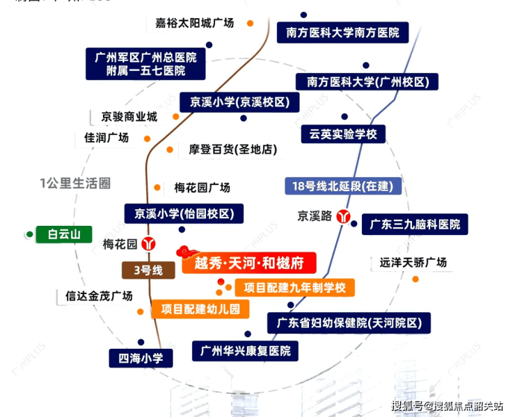 项目所在的梅花园片区,作为天河与白云两区交汇处的重要节点,是板块内罕见的成熟居住用地。随着18号线北延段等交通基建的推进,以及优质教育资源的落地,片区的城市界面与价值潜力将进一步提升,成为天河北部改善居住的核心承载区。