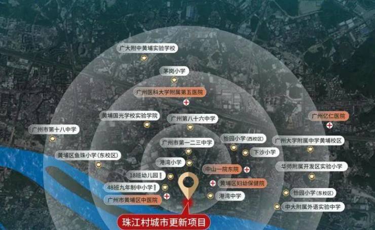 珠江村旧改自带18班幼儿园和49班九年制中小学,暂未确定引入什么学校,1公里范围内广州石化小学,港湾小学,怡园小学,荔园小学4所省一级学校,和广州市第86中、广州市第123中学两所初高中。