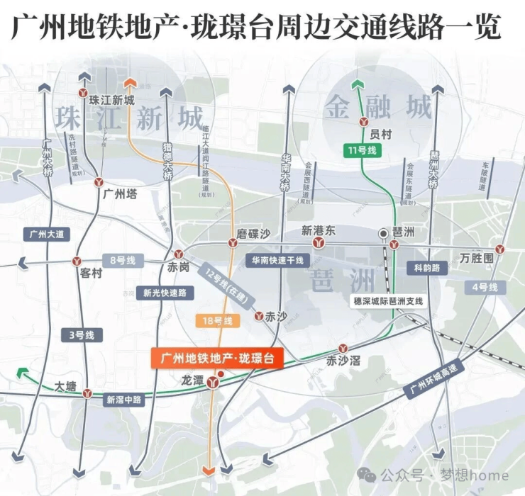 双地铁上盖,高速地铁18号线+广州首条大环线11号线龙潭站,其中11号线已开通