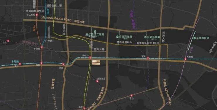 项目比邻地铁8、18号线,8号线可换乘3号线、4号线、11号线(在建中)、12号线(在建中)等。搭乘18号线可实现一站达珠江新城(磨碟沙站·冼村站),南接新光快速、右邻华南快速,速达城市核心区,琶洲港澳客运码头,便捷直达香港国际机场。