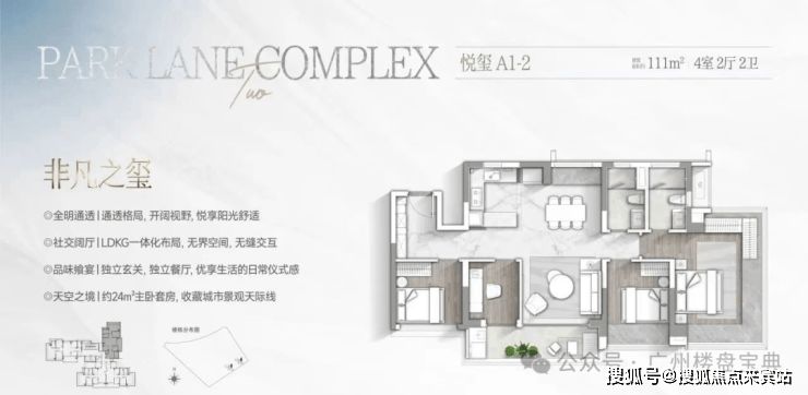建面124平四房,可做横厅或者竖厅,还是南北对流,主卧带U型飘窗,两个次卧和客厅也有飘窗位,LDKG一体化设计,约28平奢阔主卧。