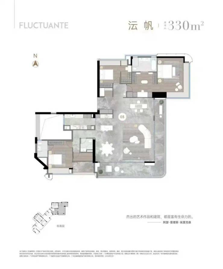 目前琶洲西区331住宅地块正式定名:琶洲·樾|华樾,现在琶洲樾华樾住宅项目也已经正式对外推售,主要在售户型为大面积的248-254-330㎡天幕CBD大平层豪宅,总共仅96席琶洲CBD核心顶豪大平层产品。