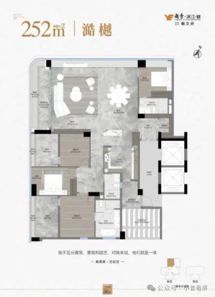 目前越秀观樾主推 126-252㎡的三至五房,还有 210㎡的合墅产品在售,所有户型均为纯板式设计,大部分做到了南北通透,得房率超 85%,部分户型因为赠送飘窗和阳台面积,实用率能达到 110%。