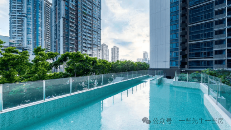配套细节:有板块唯一的空中双层悬浮泳池、泛会所(架空层做亲子/运动空间),但户型是旧设计——比如70㎡两房,得房率约75%,客厅偏小;140㎡四房,动静分区不够理想。