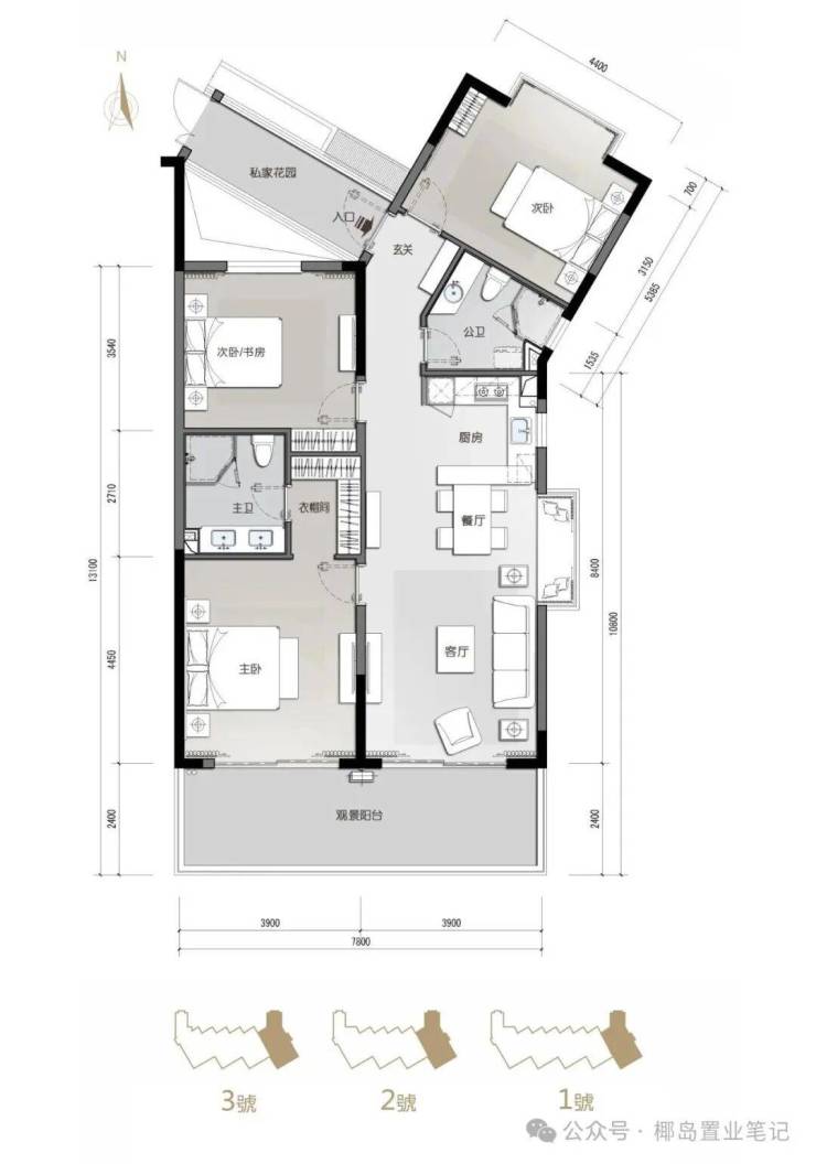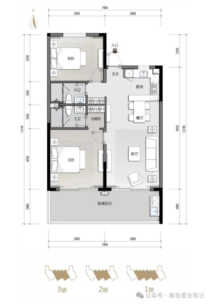 3栋低密纯板高层建筑,一字布局,南北通透,户户皆享超大观景阳台180°瞰海观山的极致视觉,海天山色尽收眼底。1.35绝版超低容积率只为成就223席高端舒适的完美胜境。