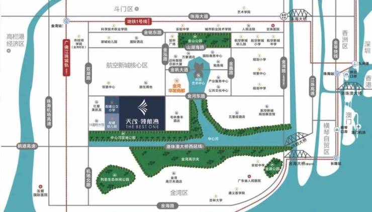 金湾航空新城坐拥4大桥3高速2城轨1机1港,占据珠海枢纽芯地位,直达横琴,速通港澳,接驳24小时国际生活圈