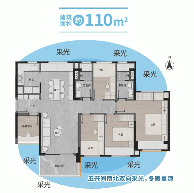 广建·云城学府响应新规,优化自身产品的户型设计,每个户型都能做到过100的使用率,且全产品均采用N+1户型设计,不仅为孩子留下一方安静的书桌,更能满足人生的各个阶段需求。从69㎡的2+1房户型,到83/93㎡的3+1房户型,110/182㎡的4+1房户型,无论单身生活,二人世界,三口之家,三代同堂都能应对自如。