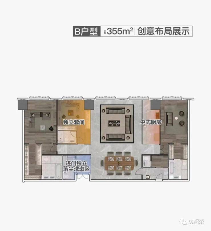 在售户型:355~654㎡三至五房