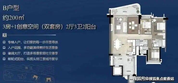 多元化产品线:涵盖140-480㎡江景大平层、叠墅(279-437㎡),其中叠墅实用率高达355%,配备私家电梯、入户花园及超大露台,部分户型首层花园达797㎡。