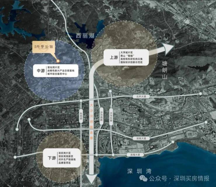 大沙河创新走廊核心位置,西丽高铁新城/留仙洞战略性新兴产业总部基地/西丽湖国际教科城三大未来引擎助力未来发展