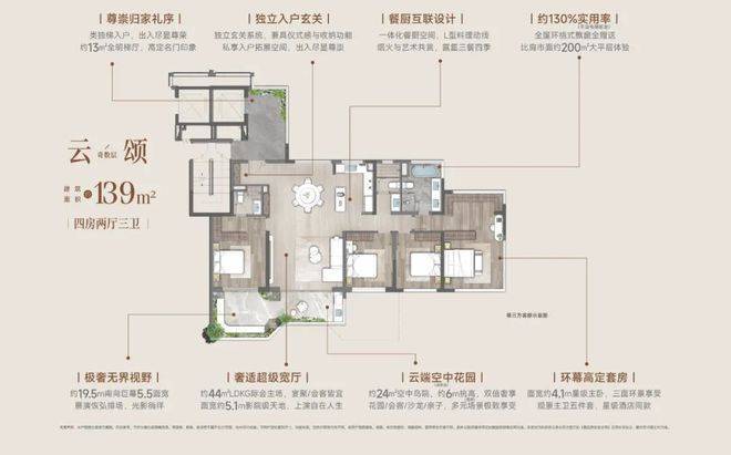 ·建面约139㎡「云颂」 四代浮岛大平层: