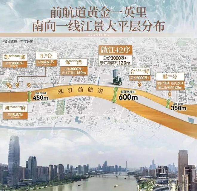 •一线滨江,南向瞰江,约110米亲江距离,一览约5000米的珠江两岸壮阔画卷