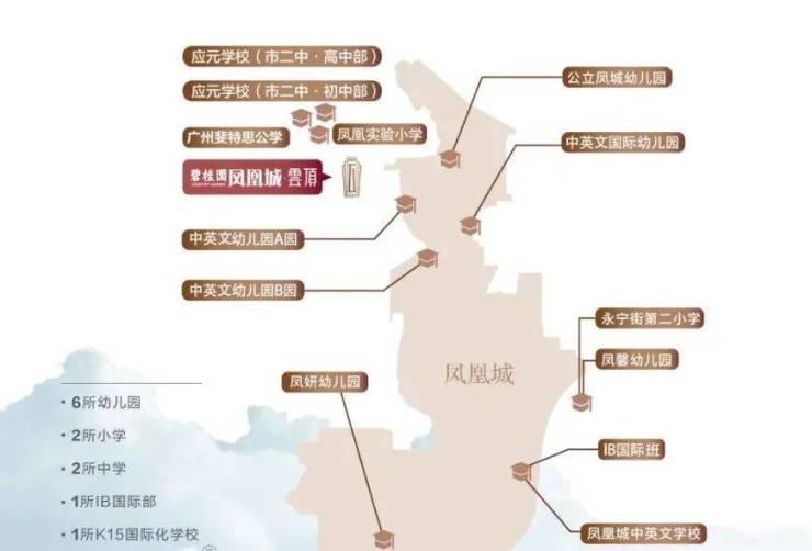 凤凰城所在的区域更是聚集了12大名校,涵盖幼儿园、小学、中学。光是这个社区,就可以提供大学之前的所有教育资源。附近有永宁第二小学、凤凰城中英文学校等,其中永宁第二小学为公立小学,教学质量更是突出。