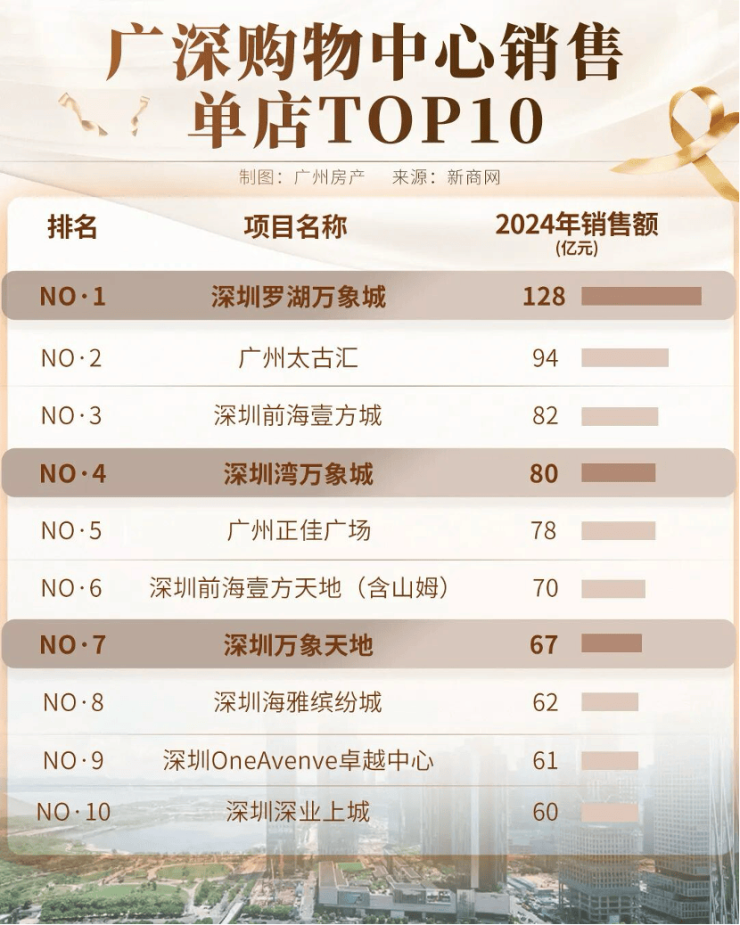 2024年广深商场销售额,前五里面万象城占了2座,深圳罗湖万象城更是华南第一。建面约19万㎡的白鹅潭万象城将极大提升城市商业格局,是4条地铁交汇的TOD,2万方的滨水公园也由华润运营。