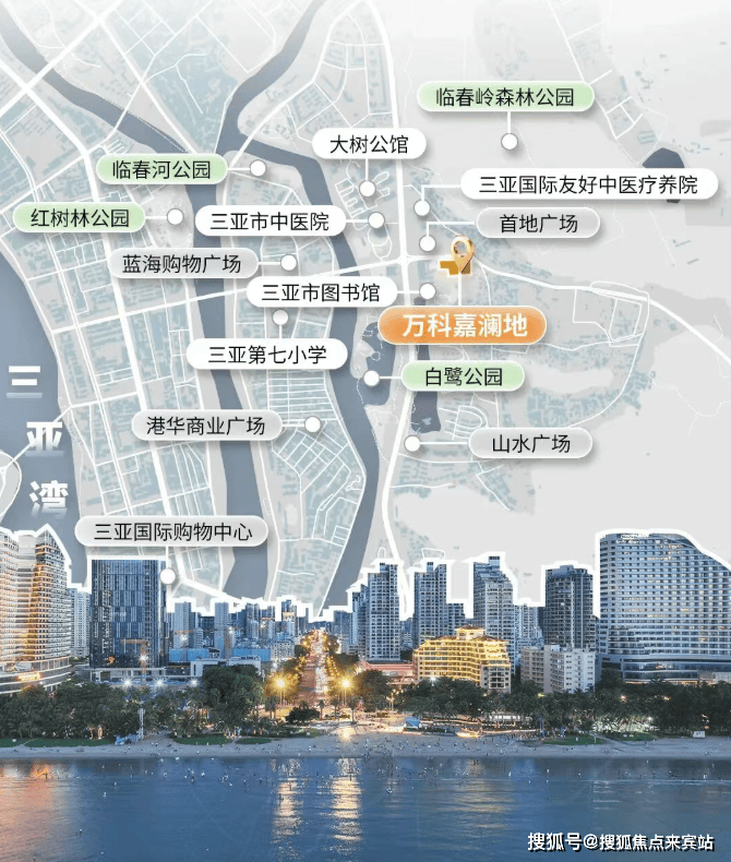 烟火浓度“15分钟”生活圈环揽蓝海购物广场、三亚湾壹号滨海购物广场、大悦城、海旅免税城、夏日百货5大城市级商业健康浓度直线距离约300M三亚中医院(三甲)人文浓度直线距离约250M三亚图书馆、约700M临春小学交通浓度新风东路、凤凰路、G98环岛高速纵横全城[信息来源:百度地图、三亚广播电视台公众号]