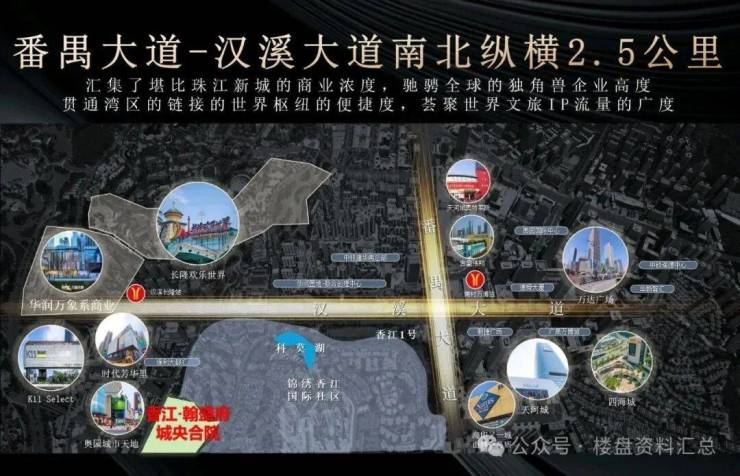 番禺香江翰盛府位于广州市番禺区汉溪长隆-万博商务区,是香江集团开发的 “万博芯、地铁口、高拓展、品质社区” 改善型住宅。以 “万博门户、长隆旁、翰盛系品质、中心生活” 为核心价值,定位为万博核心区面向中高端改善及首改客群的品质住宅。