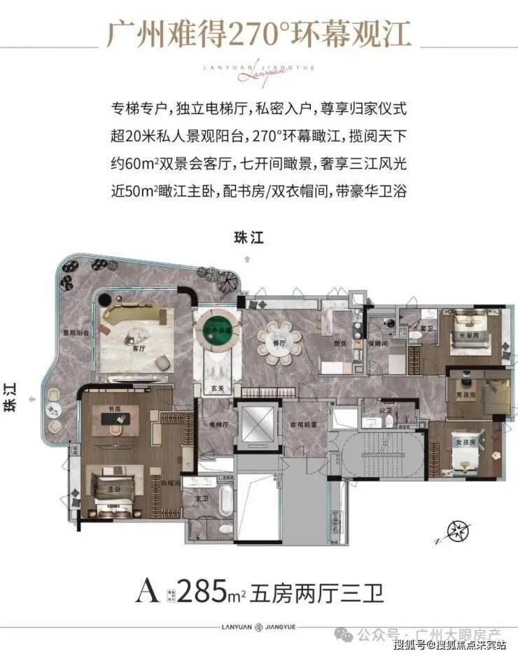 【产品面积】:约193㎡/285㎡瞰江艺术大宅