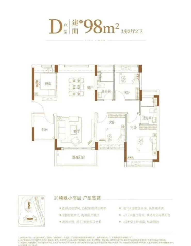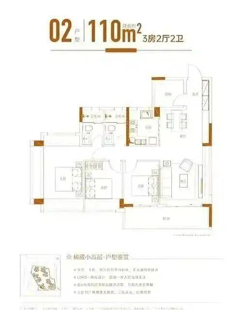 110㎡三房:西南朝向,双阳台配置,客厅与主卧尺度优于二期,适合二孩家庭。