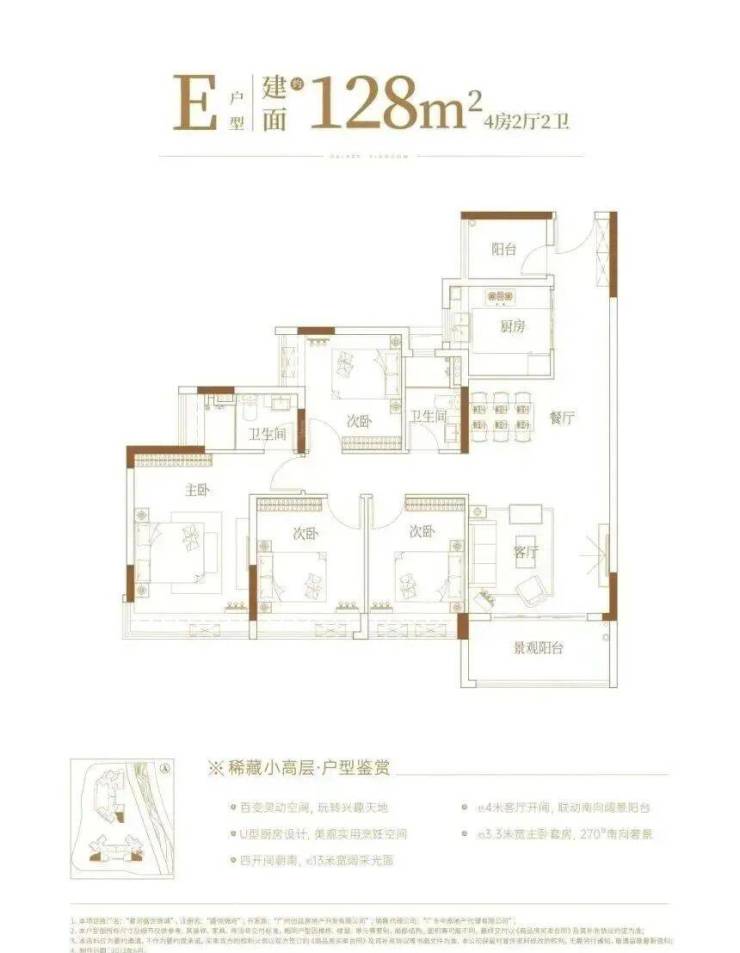 128㎡四房:独立入户花园设计,约 16㎡超宽阳台,主卧套房带飘窗,兼顾改善需求。