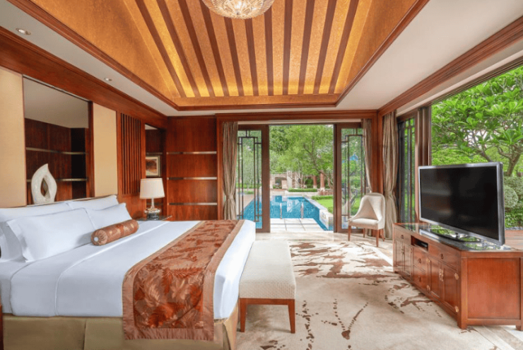 90间套房,37栋院落式别墅,独具匠心的园林设计,也是国内首个全套房式酒店。为你提供宽敞、奢华、私密的入住体验。