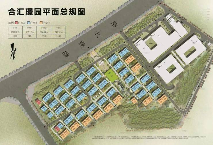 合汇璟园占地面积6.18万方,建筑面积约6.5万方,绿化率达30%,别墅区超低容积率仅0.59,共规划87席新中式独院别墅,构筑城市难得低密生态墅区。