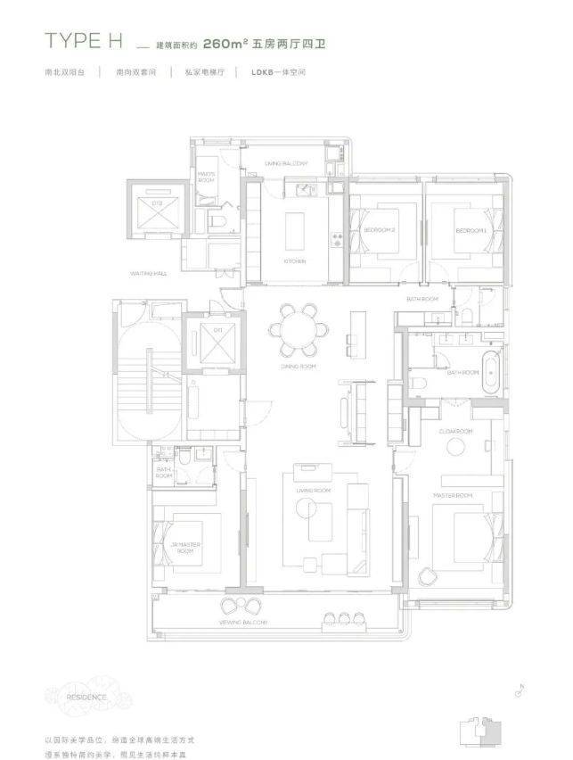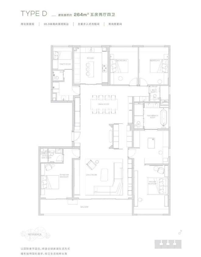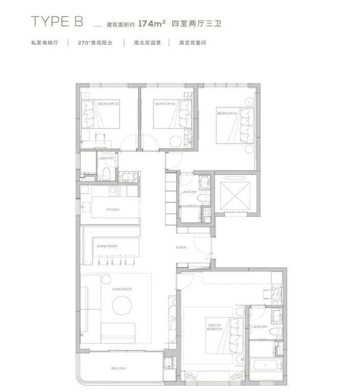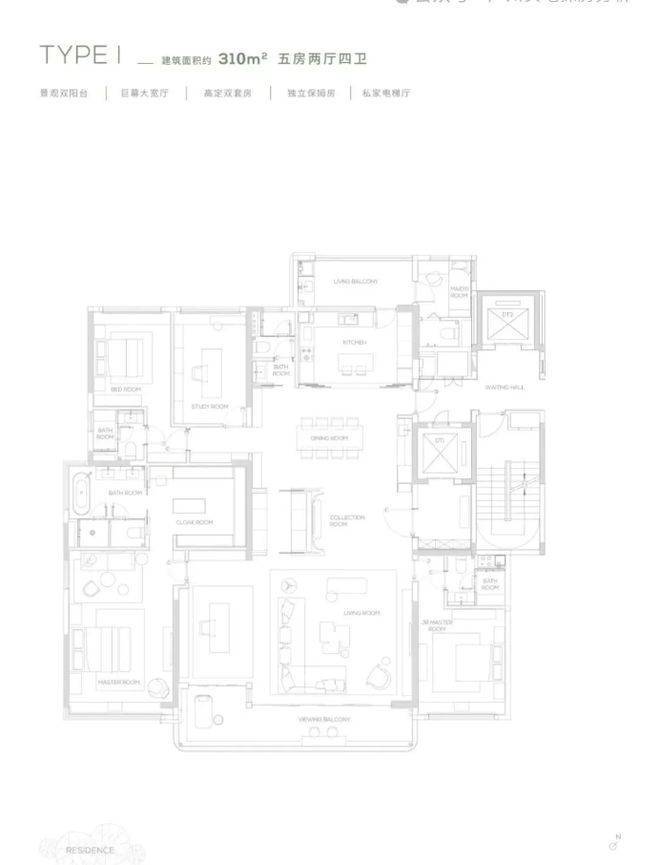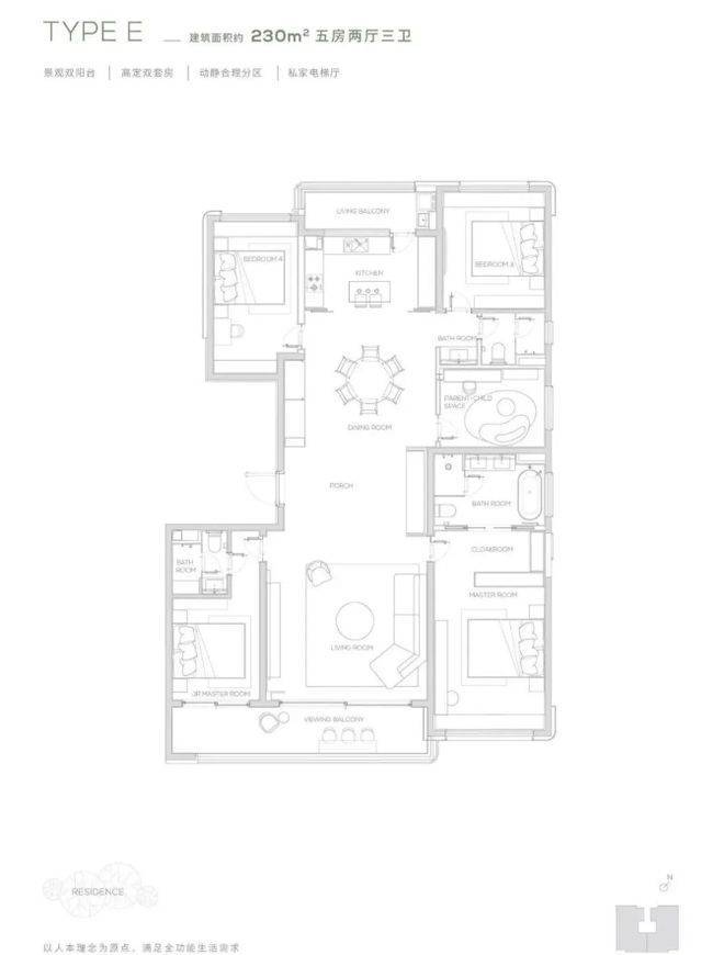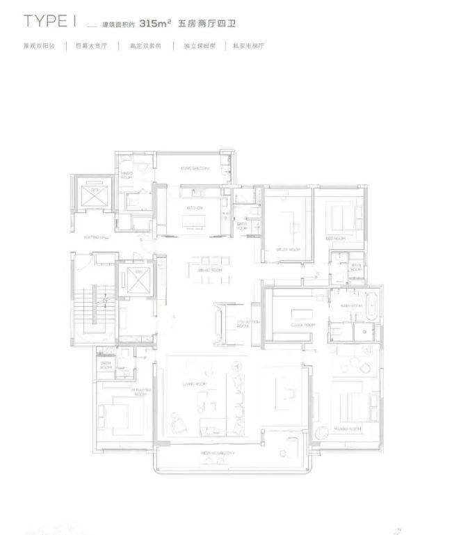 项目推出 145 - 315㎡的多样户型,均采用板式小高层设计,专梯专户,私家电梯厅保障业主隐私。145㎡户型精巧实用,空间布局合理,满足舒适居住需求;190㎡及以上户型更为奢阔,部分户型配备 270° 环幕阳台、巨幕宽厅等,视野开阔,采光通风极佳。以 230㎡户型为例,宽敞的客厅连接环幕阳台,可将窗外的山景湖光尽收眼底,为家庭聚会和休闲娱乐提供了豪华空间。卧室套房设计,配备独立卫浴和衣帽间,提升居住的舒适度与私密性。多样的户型选择,满足了不同家庭结构和生活需求的高端居住要求。