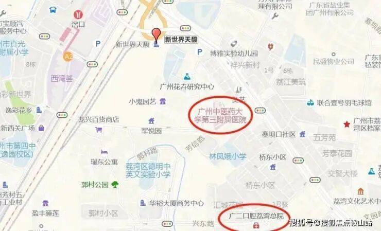 3公里内有5所三甲医院,广州中医药大学第三附属医院{芳村院区},广州医科大学附属第一医院,广东省中医院芳村医院等等。