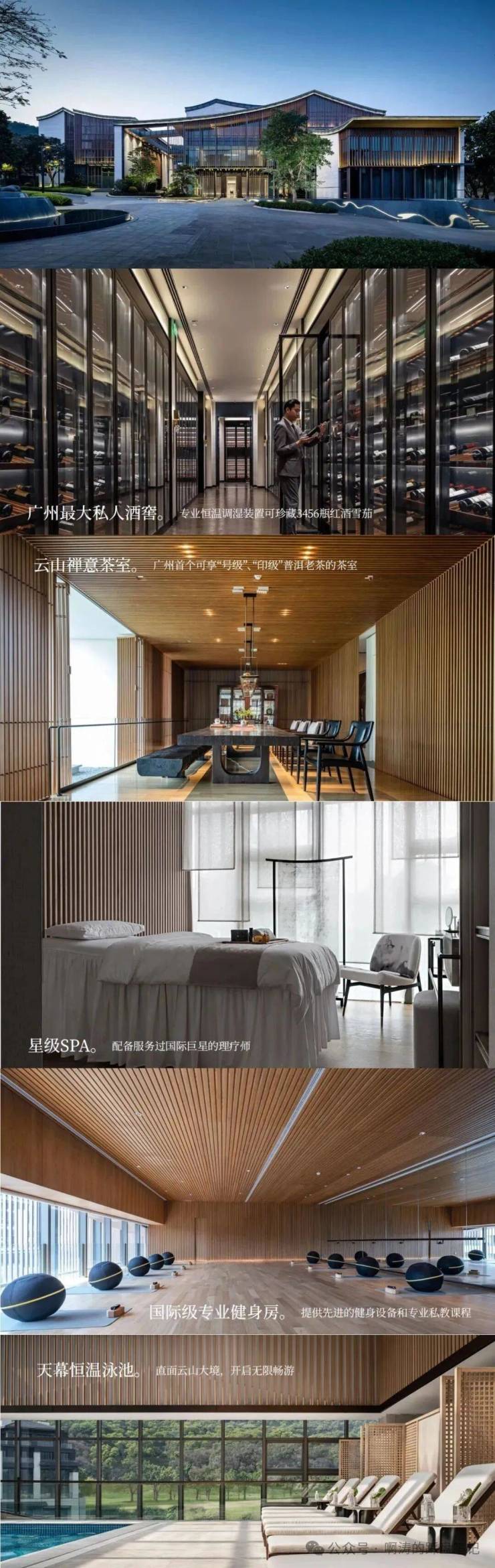 斥资上亿元, 匠造规模近 10000 ㎡的华南四大会所之一。广州最大私人酒窖、广州首个可享“号级”、“印 级”普洱老茶的茶室、 国际巨星同款星级 SPA、 国际级专业健身房、天幕恒温泳池。