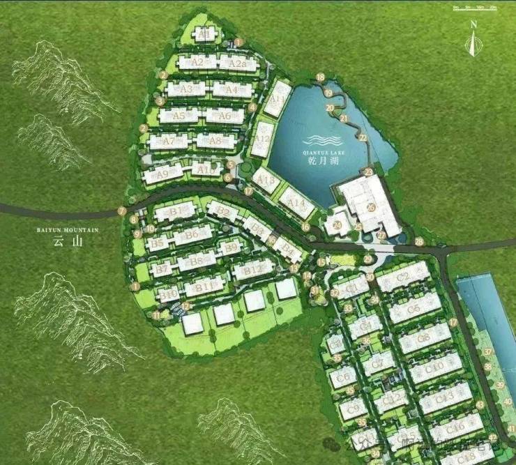 分为ABC三个住宅组团分期开发,其中A区为41套联排别墅和15套临湖别墅,B区为37套联排别墅,C区以叠墅为主少量平墅产品,共规划269户。