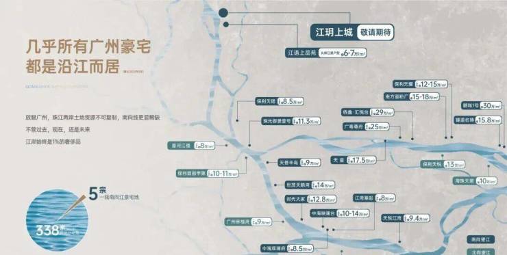 【占据1%稀缺资产】广州今年土地拍卖338宗地块,仅有1%是一线南向江景住宅,珠江两岸土地资源不可复制,南向线更显稀缺,江岸始终是1%的奢侈品。