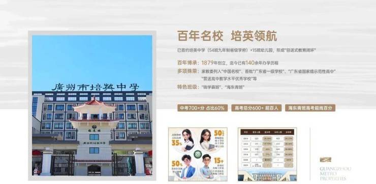 🏫54班九年制培英中学(已签约):2024年高考特控率增幅广州第一,初中部升学率连续5年超90%,出家门即校门,教育资源为资产增值保底。