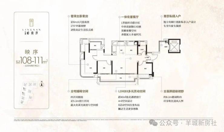 项目首献广州双全景舱奢居范式,建面约108 - 141㎡全南向五空间,全户型私梯入户搭配独立电梯厅,尊崇归家专属感。全屋配备中央空调、除湿新风系统及华为定制智能化(具体以交付为准)。LDKBX多元灵动空间,满足多样生活需求,主卧270°环幕视野,尽享极致景观。双U型全景舱设计,270°无柱化环幕全景舱,超流体曲屏立面设计,三面超广角极景方厅,打造豪宅式高阶生活空间。
