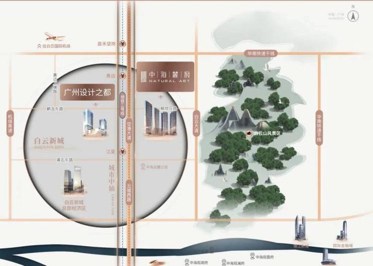 空港大道全长18.3公里,串联起白云新城南总部集聚区、广州设计之都,空港经济区等重点功能片区。中海麓府,位于空港大道旁,近享黄金中轴价值潜力,见证白云蝶变。