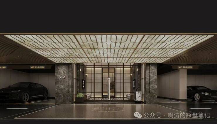 车库入口配置星空穹顶,搭配奢华型迎宾背景墙,内部打造铝格栅吊顶、透光云石穹顶、仿石漆天花、高品质金刚砂+地坪漆双重工艺等豪奢配置。穿越奢华的归家路,际遇层峯的尊崇归家礼序。
