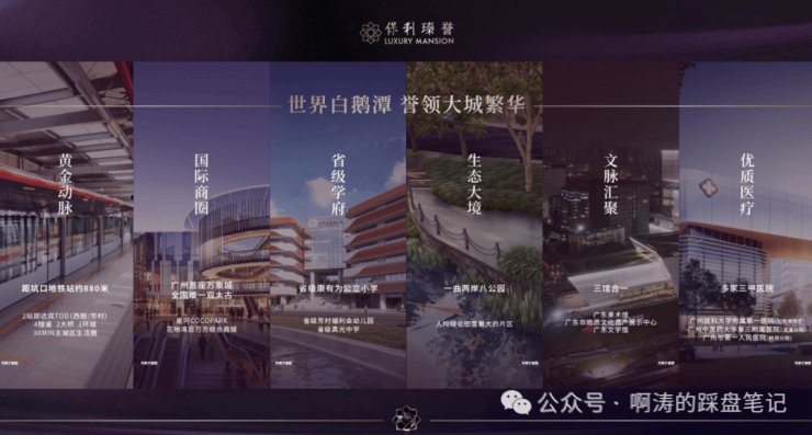 保利作为花地湾片区连片开发最重要的城市运营商,打造约120万方超配大城,涵盖了高端住宅、酒店、滨水商业街区、公寓、文化等多为复合业态,实现真正意义上的超配大城。