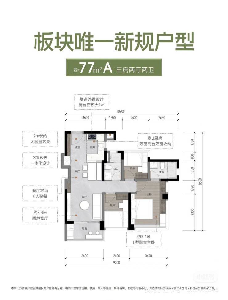 - 主力户型:77-135㎡三至四房,实用率127%-138%(新规高拓)