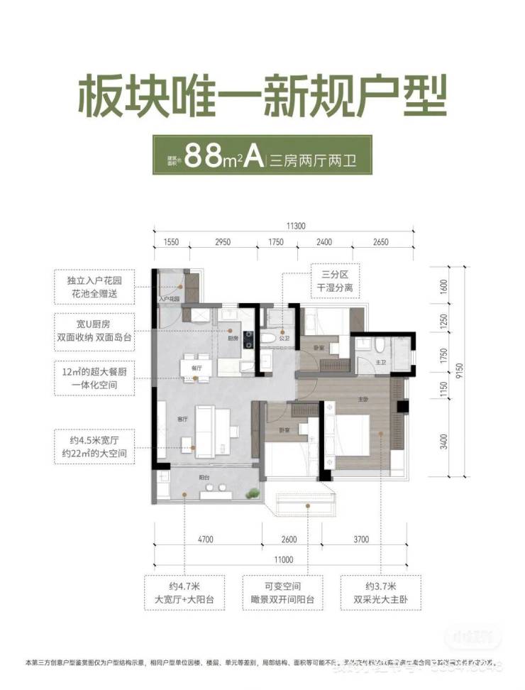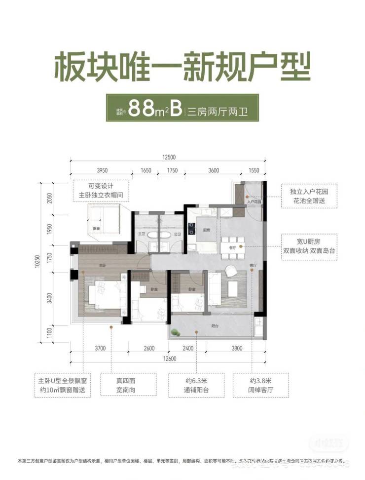 - 77㎡做三房、88㎡三房带7.3米阳台、103-135㎡四房阔绰尺度