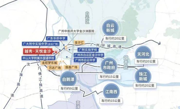 项目位于广州市白云区金沙洲板块,紧邻荔湾区,是越秀地产打造的天字系高端项目。