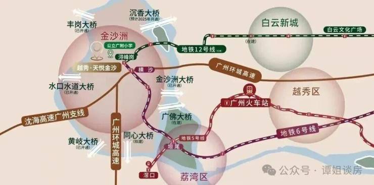 项目距离地铁6号线浔峰岗站约2.5公里,如果需要地铁出行的基本就不太现实,广州地铁12号线已经通车,不仅能缓解6号线金沙洲段严重拥挤的问题,还能大大缩短金沙洲到白云新城的通勤时间。