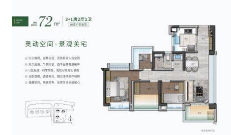 项目分两期开发,户型设计兼顾刚需与改善需求。一期在售户型包括72㎡(东北/西北朝向)、88㎡(1栋东南/2栋西南)、104㎡(1栋西南/2栋东南),目前1栋和2栋尾货较少,主推3栋单位。二期在售户型为110㎡(东南/西南)、129㎡(东南)、143㎡(西南),当前主力销售楼栋为5栋。整体来看,一期主打紧凑实用型四房,如72㎡做到四房一卫,88㎡与104㎡均为四房两卫;二期则更侧重改善体验,110㎡为三房两卫,129㎡与143㎡均为四房两卫,空间布局更为舒展,满足不同家庭结构的居住需求。