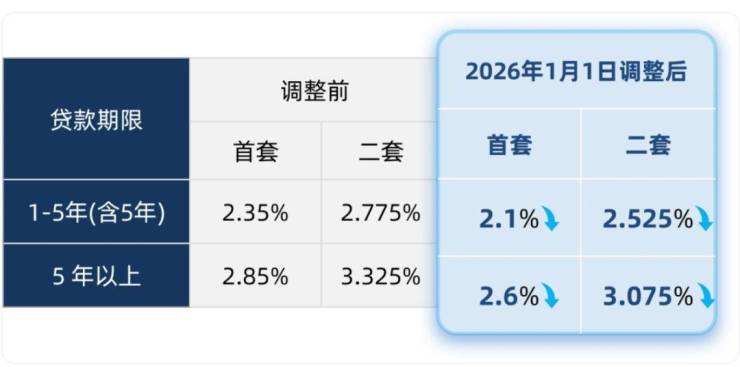 2026年1月1日起,存量公积金贷款利率以及存量商业贷款利率将同步下调。