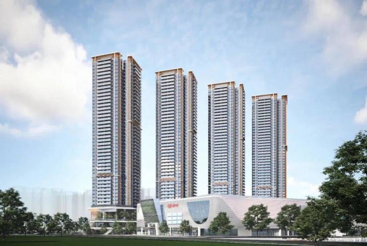 中海环宇熙和一共规划有4栋楼,每一栋的其中1-2层是做商业,3层是挑高9米的空中花园,4层开始才是住宅。