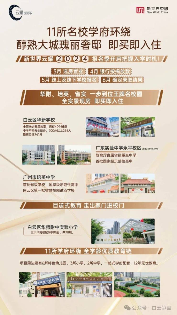 华师附小+培英中学的名校组合让新世界项目组团多年来一直占据白云区公办学区房最优选前三甲。以“教育生态圈”的打造去带动区域教育水平的提升;