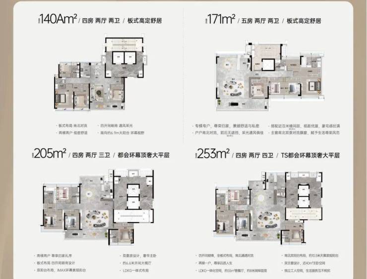 在售面积:140m²-171m²-205m²-253m²
