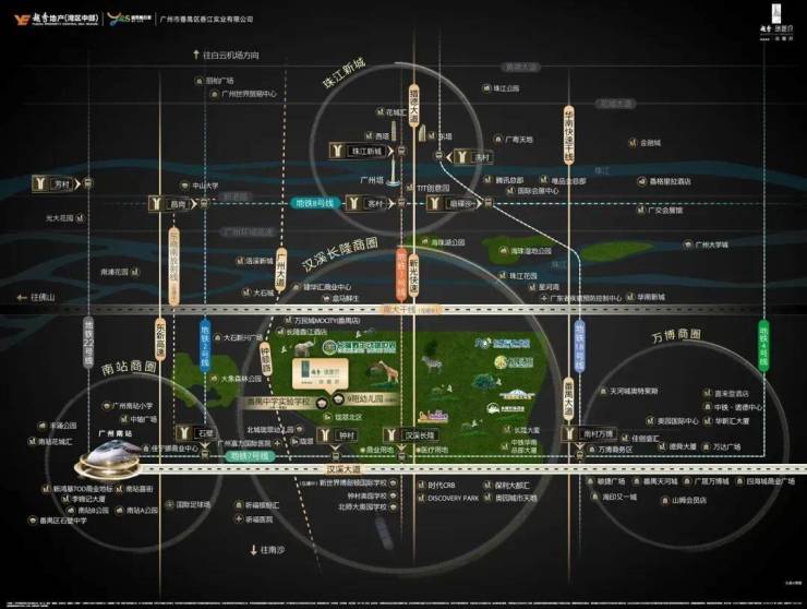 越秀·瑞麓府项目所在的长隆-万博板块是广州未来的重要发展区域之一,周边集中了众多的商业、教育、医疗和交通资源。万博CBD是广州“中国500强企业”密集的区域,商圈的聚集效应为项目提供了潜在的投资和生活价值。同时,长隆野生动物世界和其他主题乐园,使得这一地区成为广州重要的旅游目的地,年客流量超千万,提升了区域的活力和吸引力。