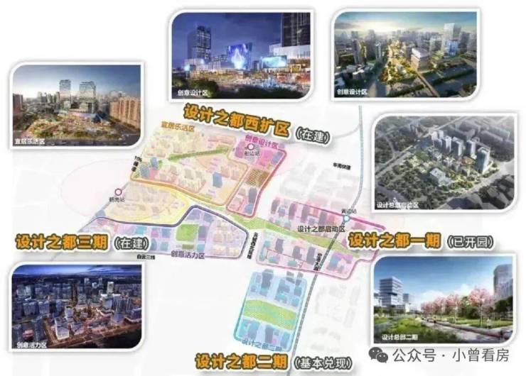 目前,设计之都版块已有超过100家设计领军企业已进驻,据官方数据2021年产值已达278亿,全部投运后年产值将达500亿,带动上下游产值超3000亿。