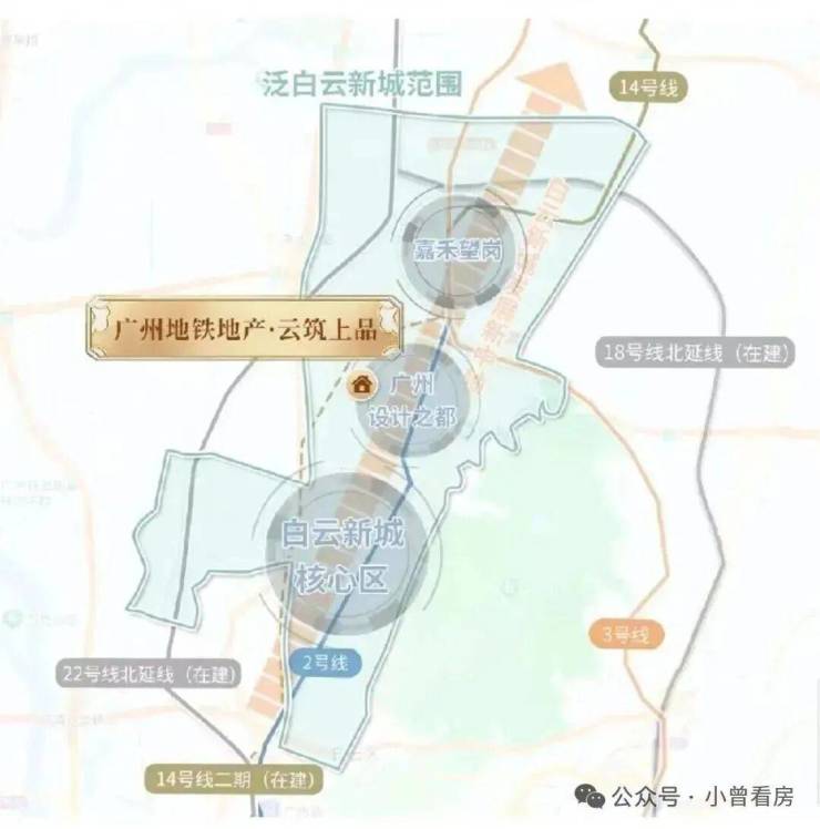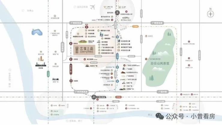 该盘位于白云新城设计之都三期地段,广州地铁·云筑上品位于鹤龙东路北侧/鹤龙一路东侧,鹤南TOD地铁站旁边,周边有时光汇广场、白云汇广场、凯德广场、5号停机坪广场等白云繁华的商场综合体。