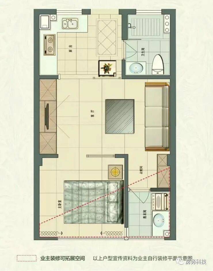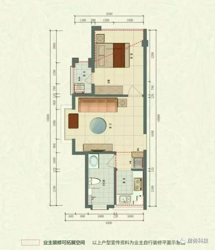 B户型 建筑面积44.88㎡一室一厅一厨一卫